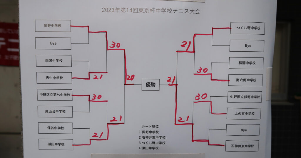 優勝は横浜市立岡野中学校(2連覇)、準優勝は練馬区立石神井東中学校でした。